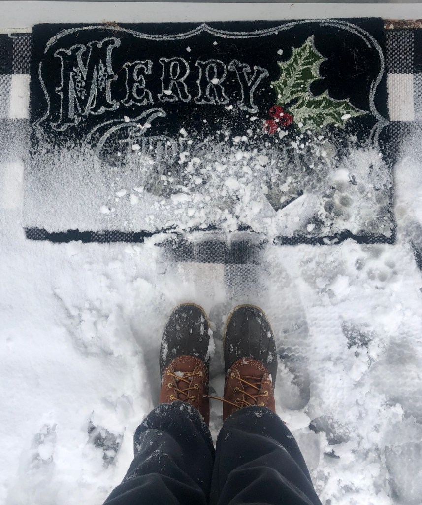 I felt sad for a moment, but then felt the buzz of my phone. Steve was sending pictures of Hudson rapid-fire, per usual. They both were at home in Massachusetts frolicking in the still-falling snow. Apparently Hudson had recovered from the horrific bout of gastroshitstorm-itis I had the pleasure of scraping off the entryway floor prior to my departure. In one of the pictures I see Steve’s house in the background. It’s set back and snow blankets the roof and surrounding yard. The landscape seems to merge seamlessly into the clouds above, causing the entire scene to glow.